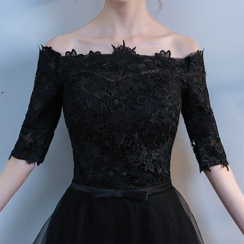 - Black lace tulle short prom dress, homecoming dress -