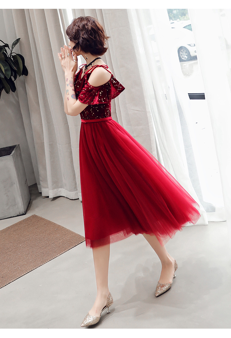 - Burgundy v neck tulle short prom dress, homecoming dress -