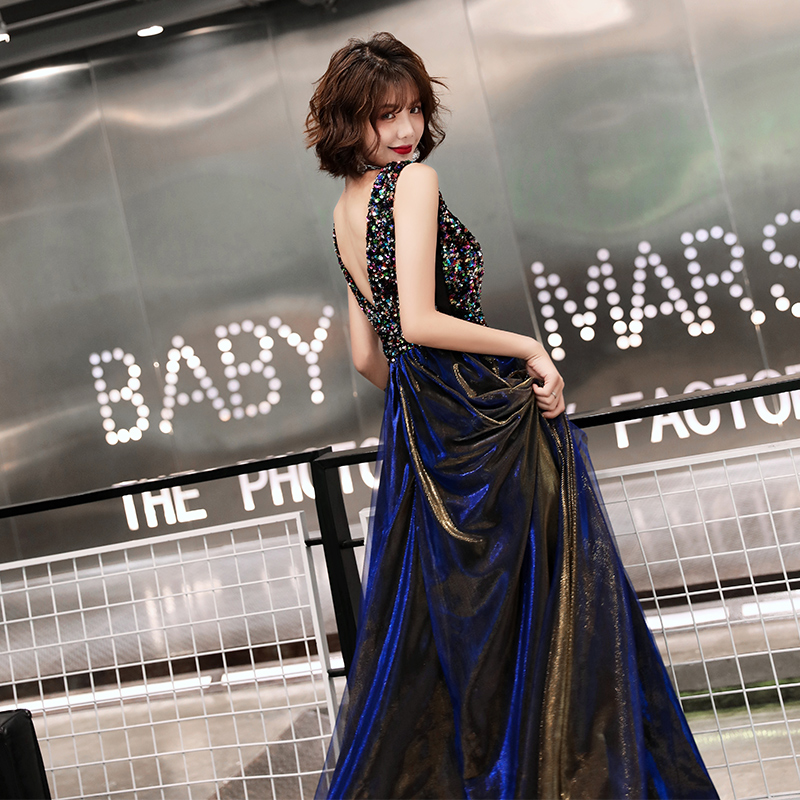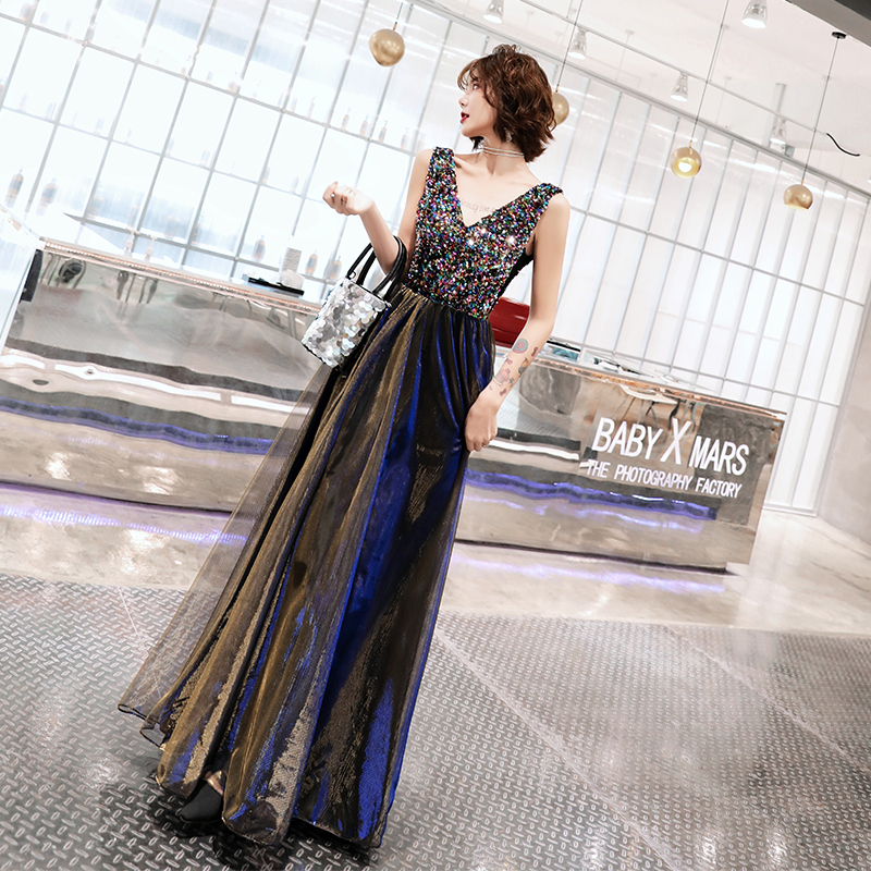 - Stylish v neck tulle sequins long prom dress, evening dress -
