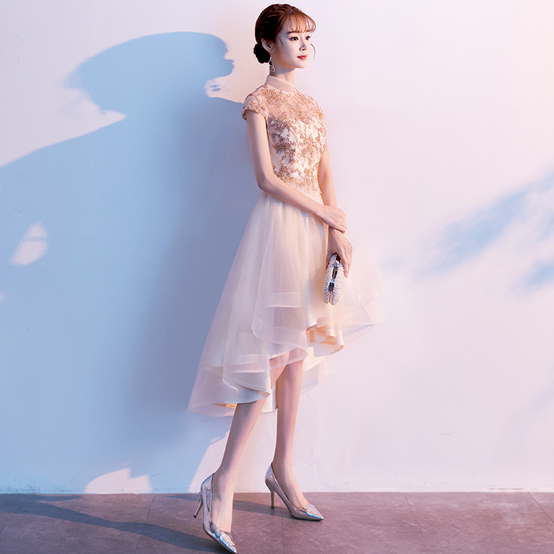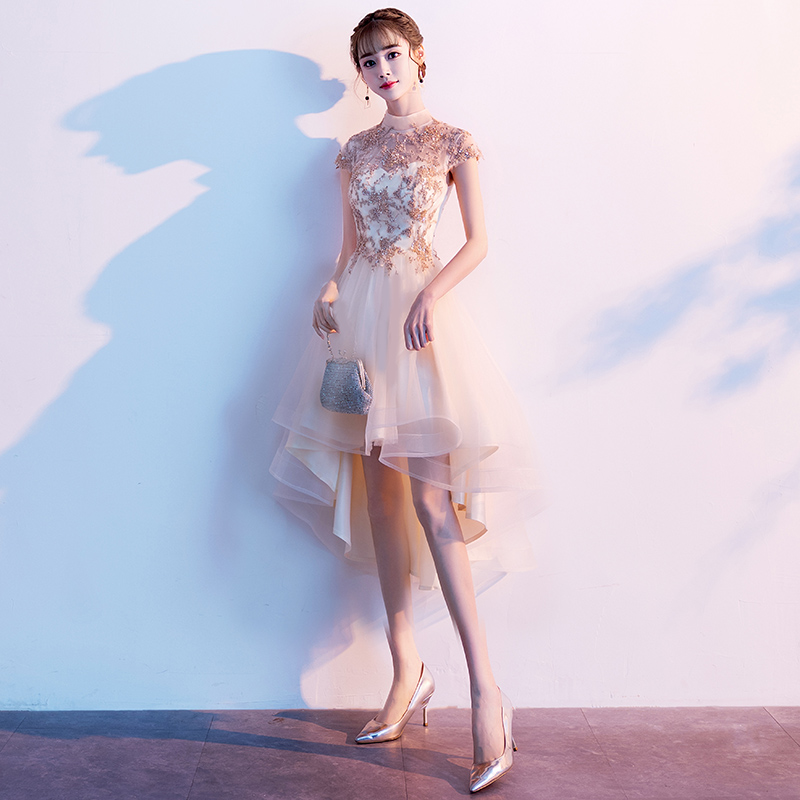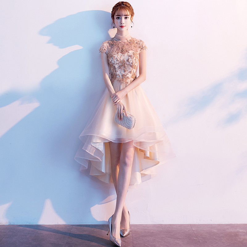 - Cute champagne tulle short prom dress, homecoming dress -