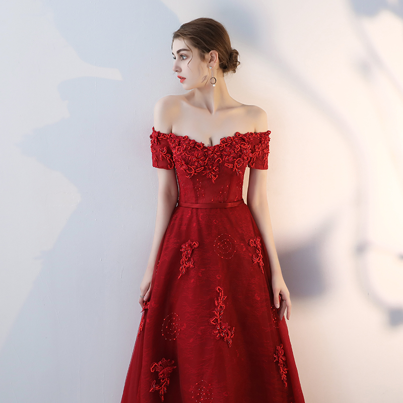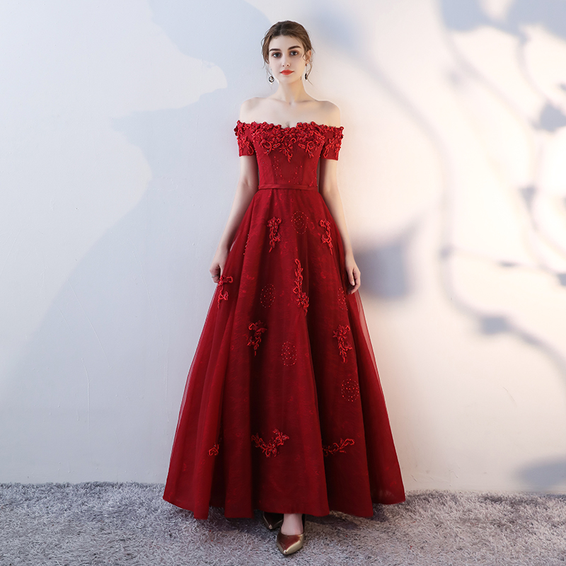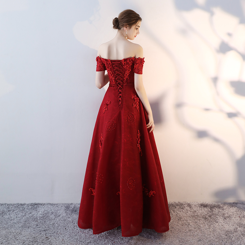 - Burgundy lace long prom dress, burgundy evening dress -