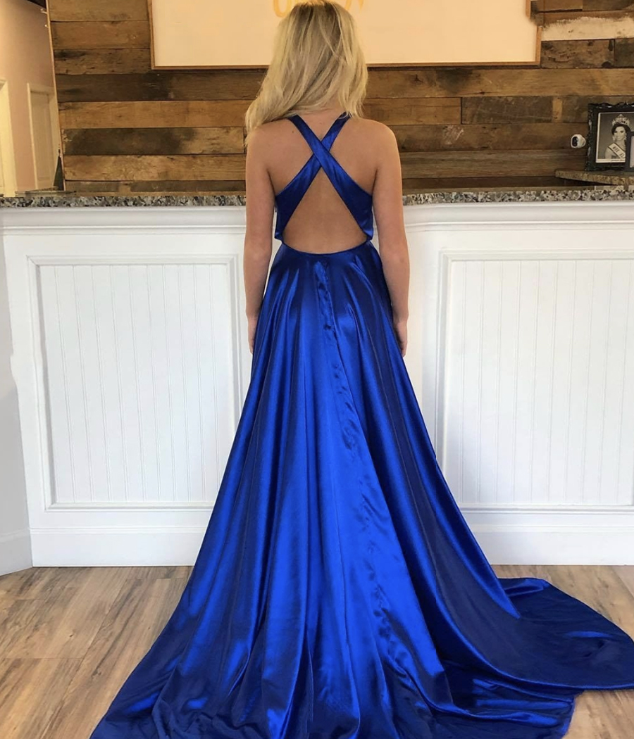Simple v neck long prom dress blue evening dress · Dress idea · Online Store Powered by Storenvy