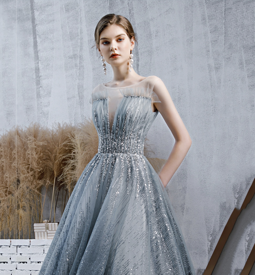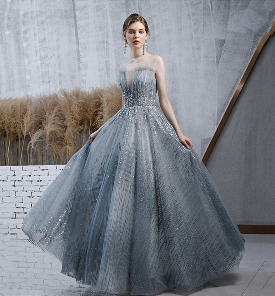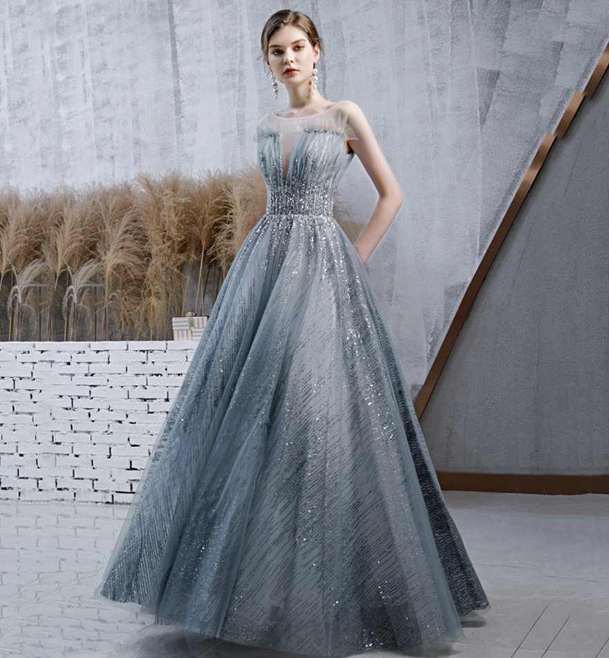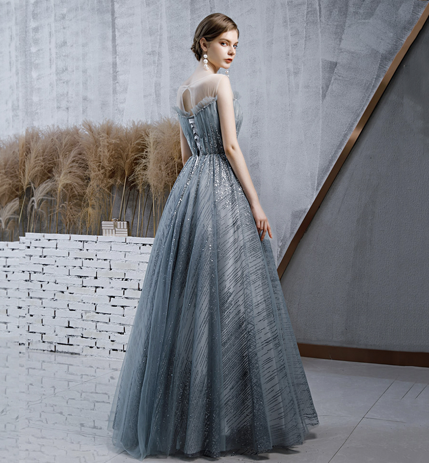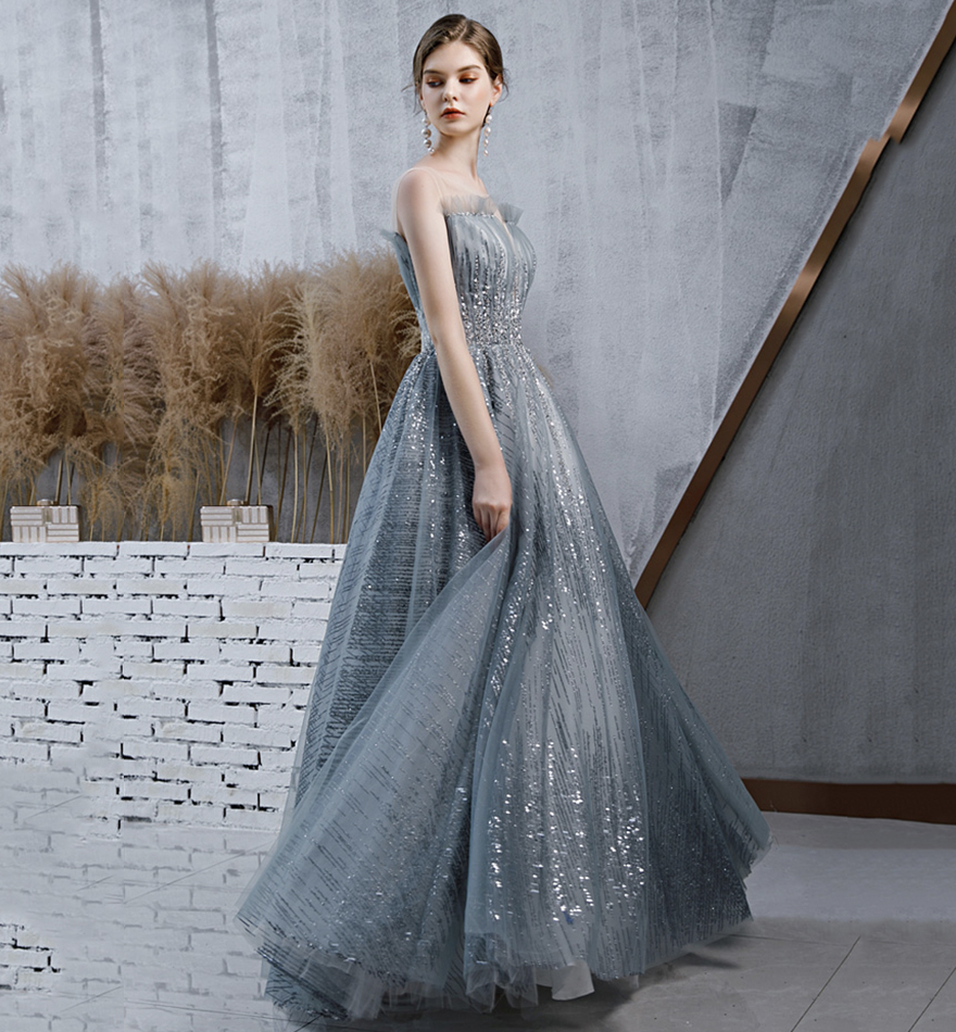 - Stylish tulle sequins long prom dress evening dress -