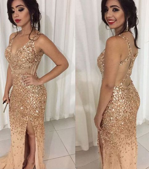 - Mermaid v neck beading long prom dress,evening dresses -