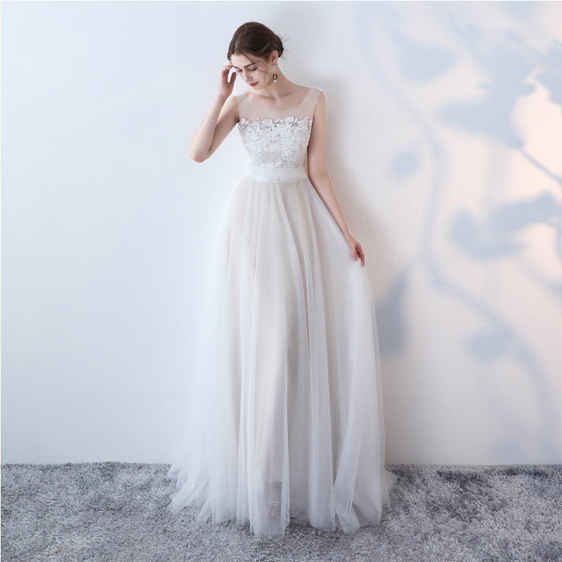 - White lace tulle long prom dress, lace evening dress -