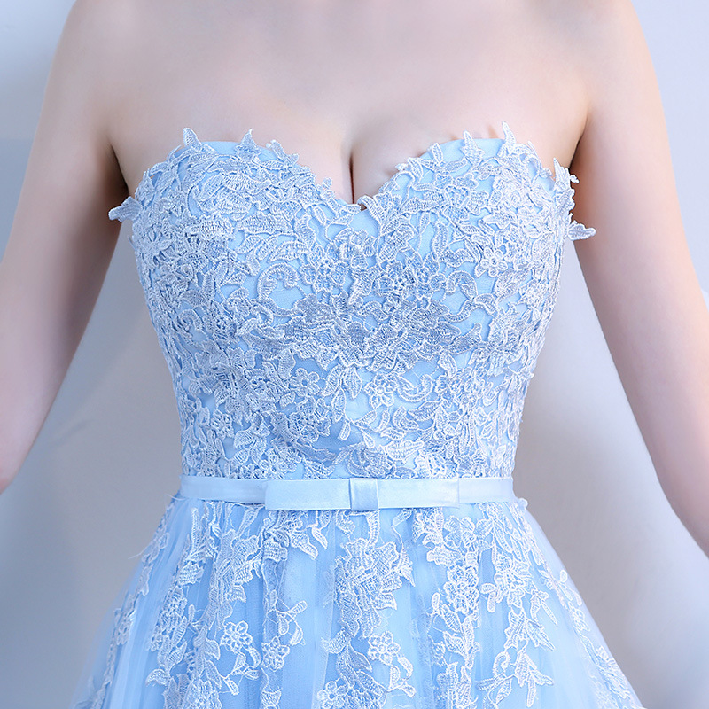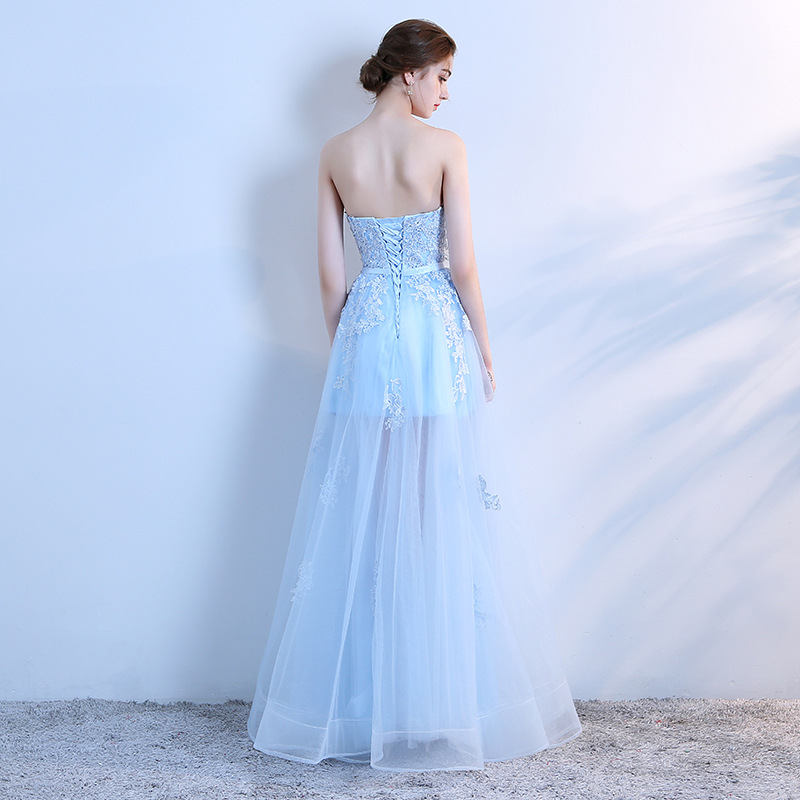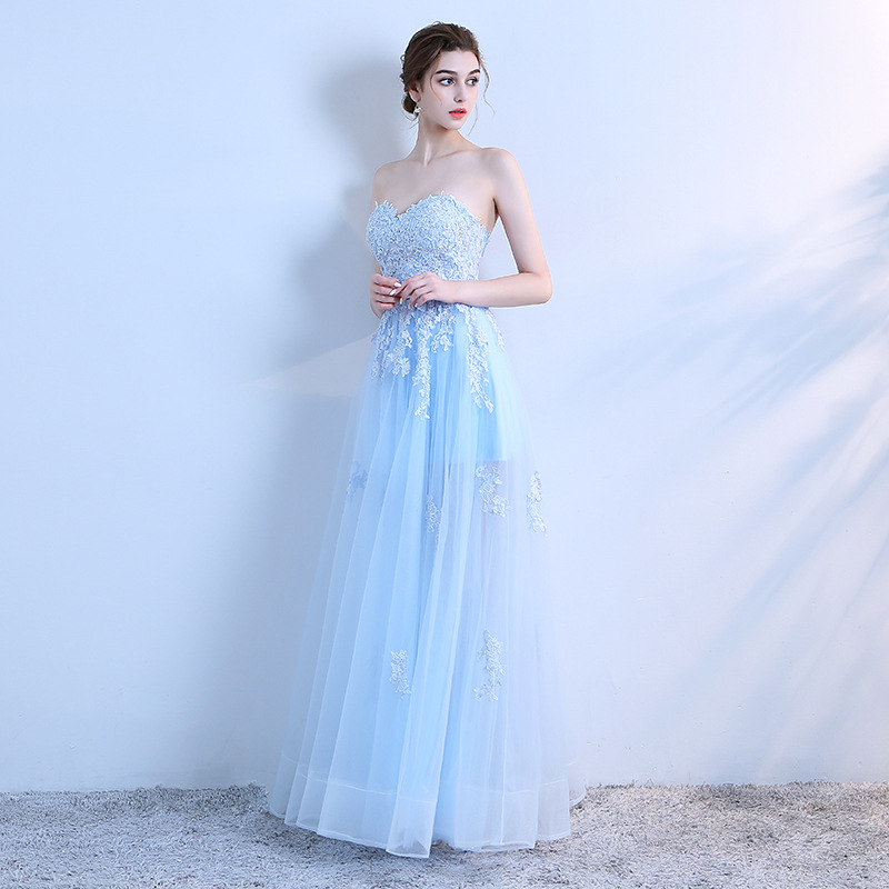 - Sky blue sweetheart neck tulle lace long prom dress, formal dress -
