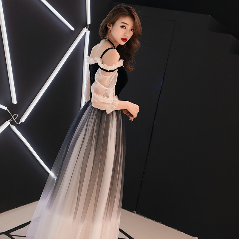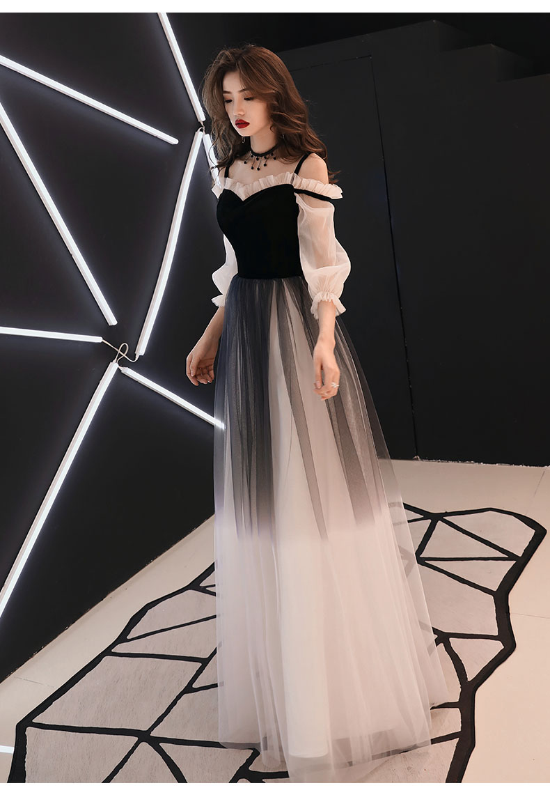 - Stylish velvet tulle long prom dress, long sleeve evening dress -