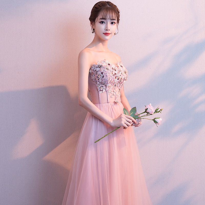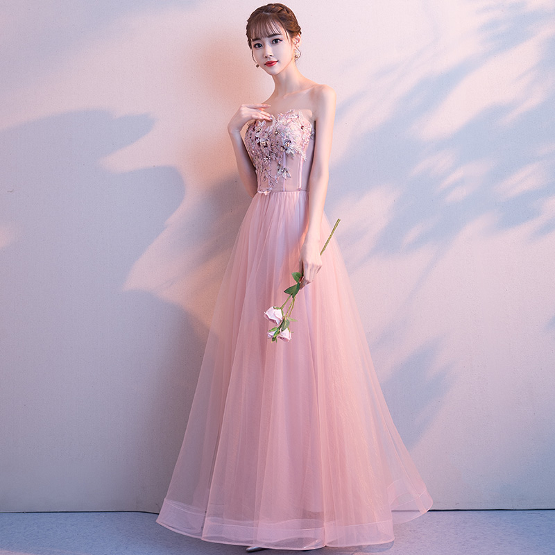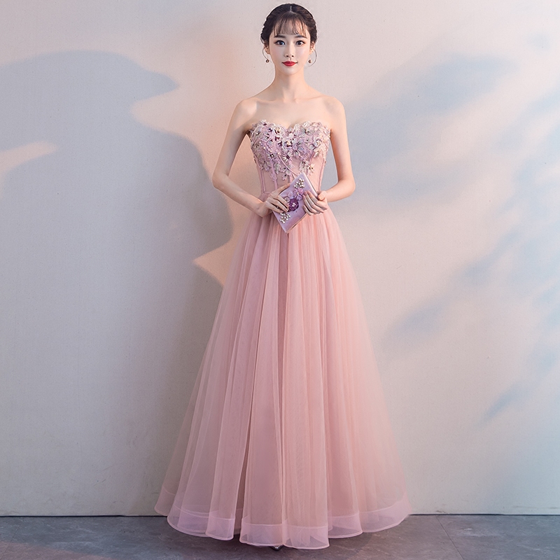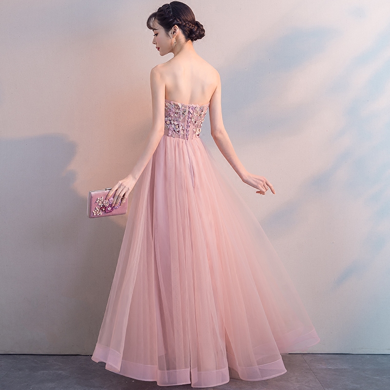 - Pink sweetheart neck lace tulle long prom dress, evening dress -