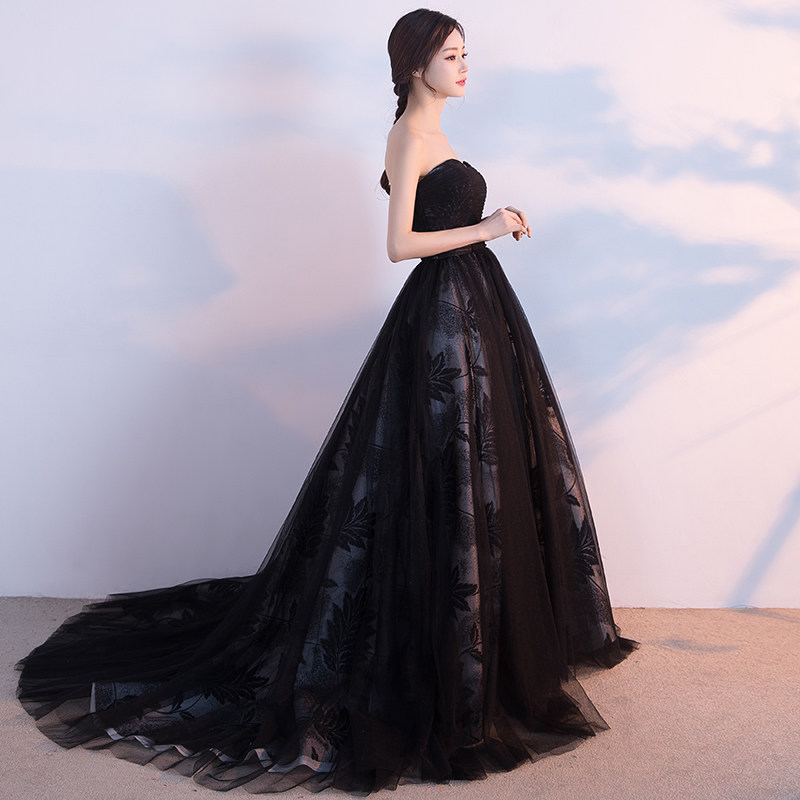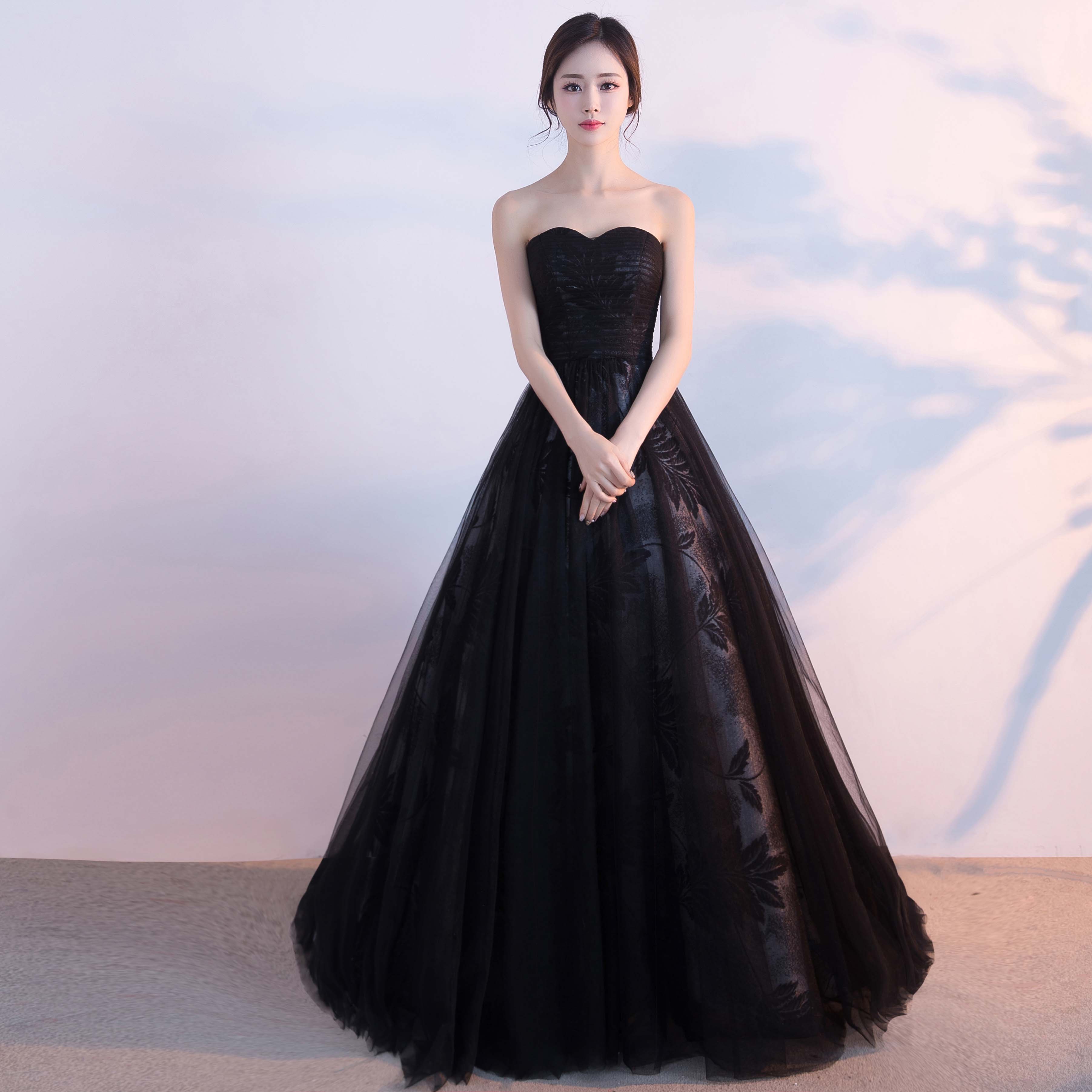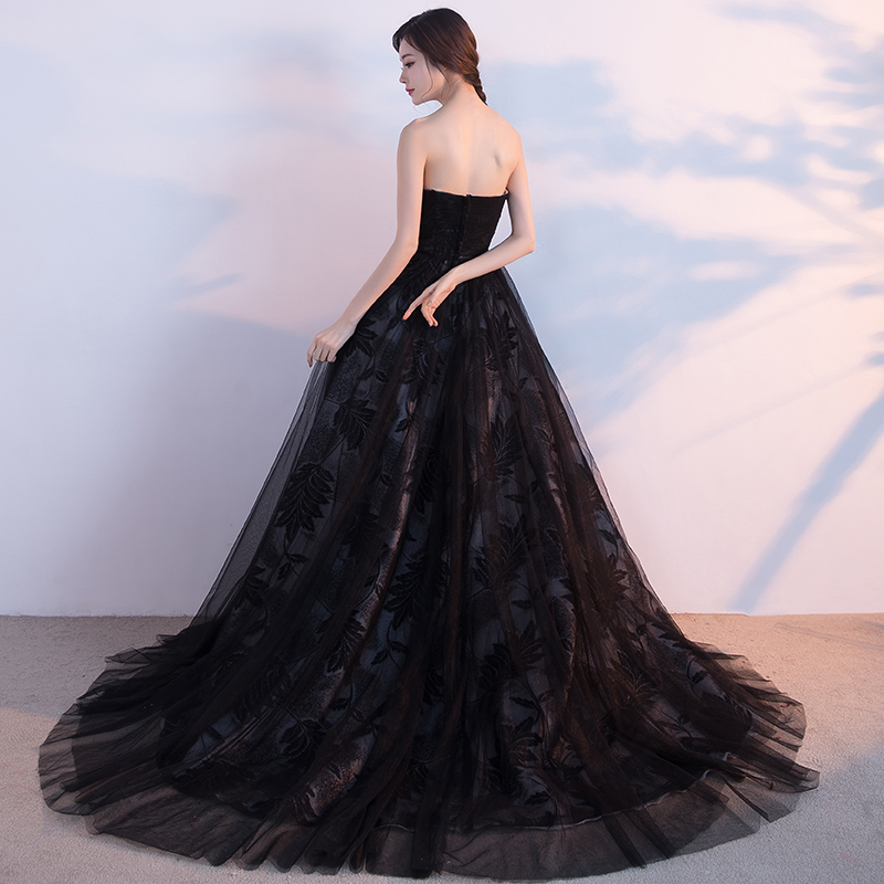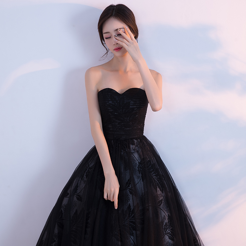 - Black sweetheart neck tulle long prom dress, evening dress -
