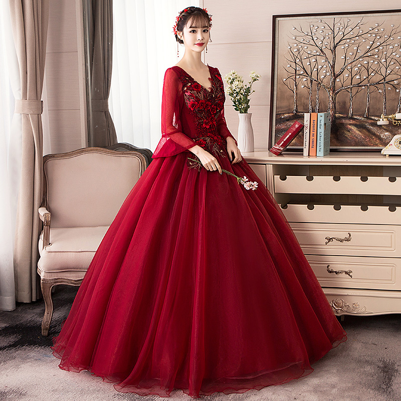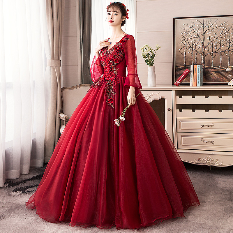 Burgundy v neck tulle long prom dress, evening dress · Dress idea · Online Store Powered by Storenvy