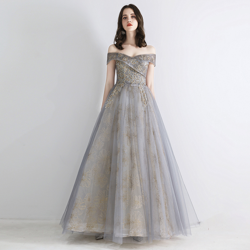 - Stylish tulle lace long prom dress, formal dress -