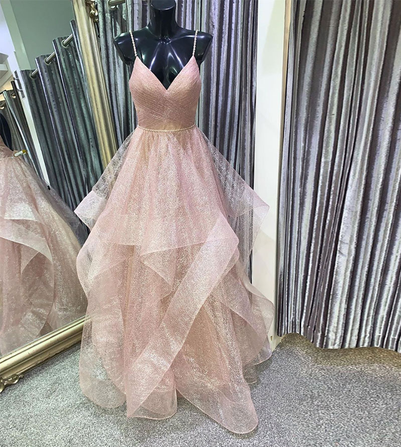 Pink v neck sequins long prom gown · Dress idea · Online Store Powered by Storenvy