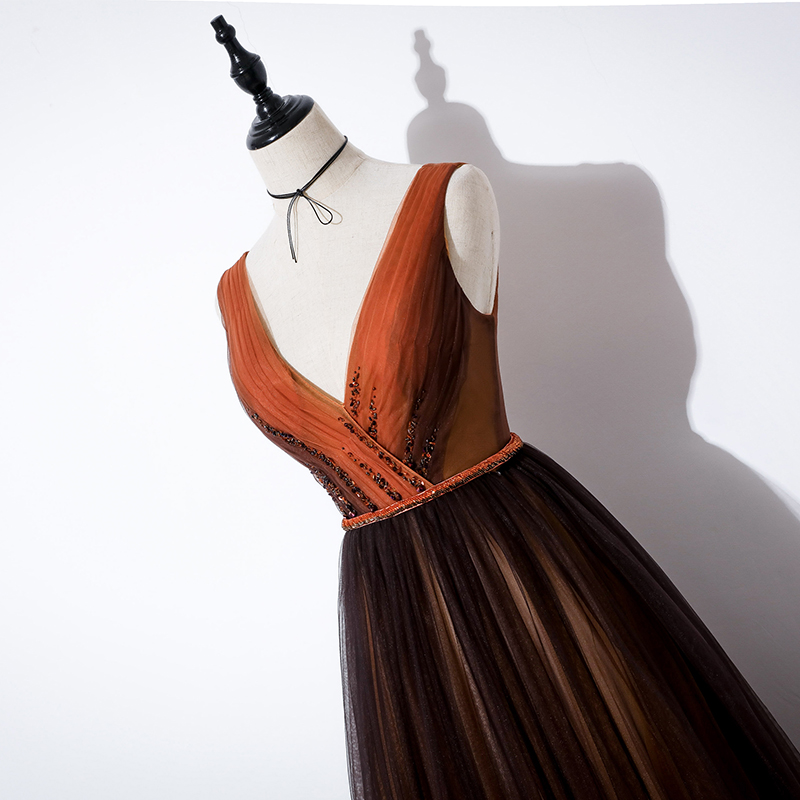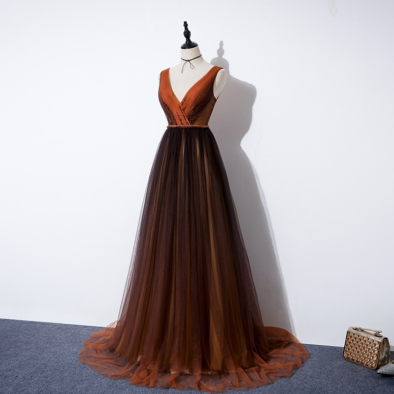 - A line v neck tulle long prom dress evening dress -
