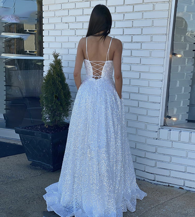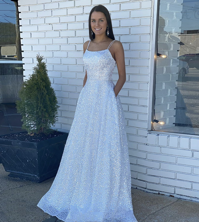 - Simple sequins long a line prom dress party dress -
