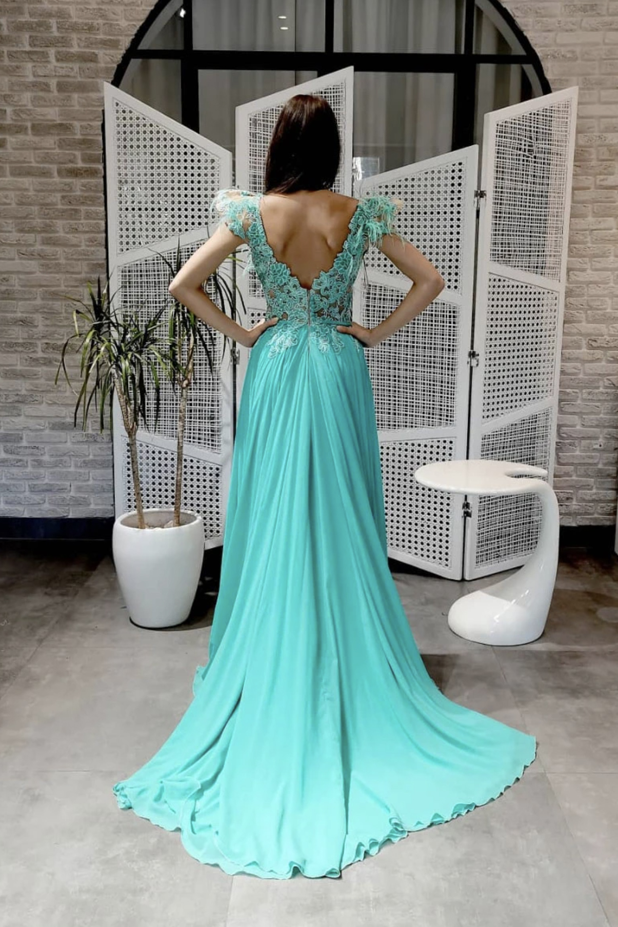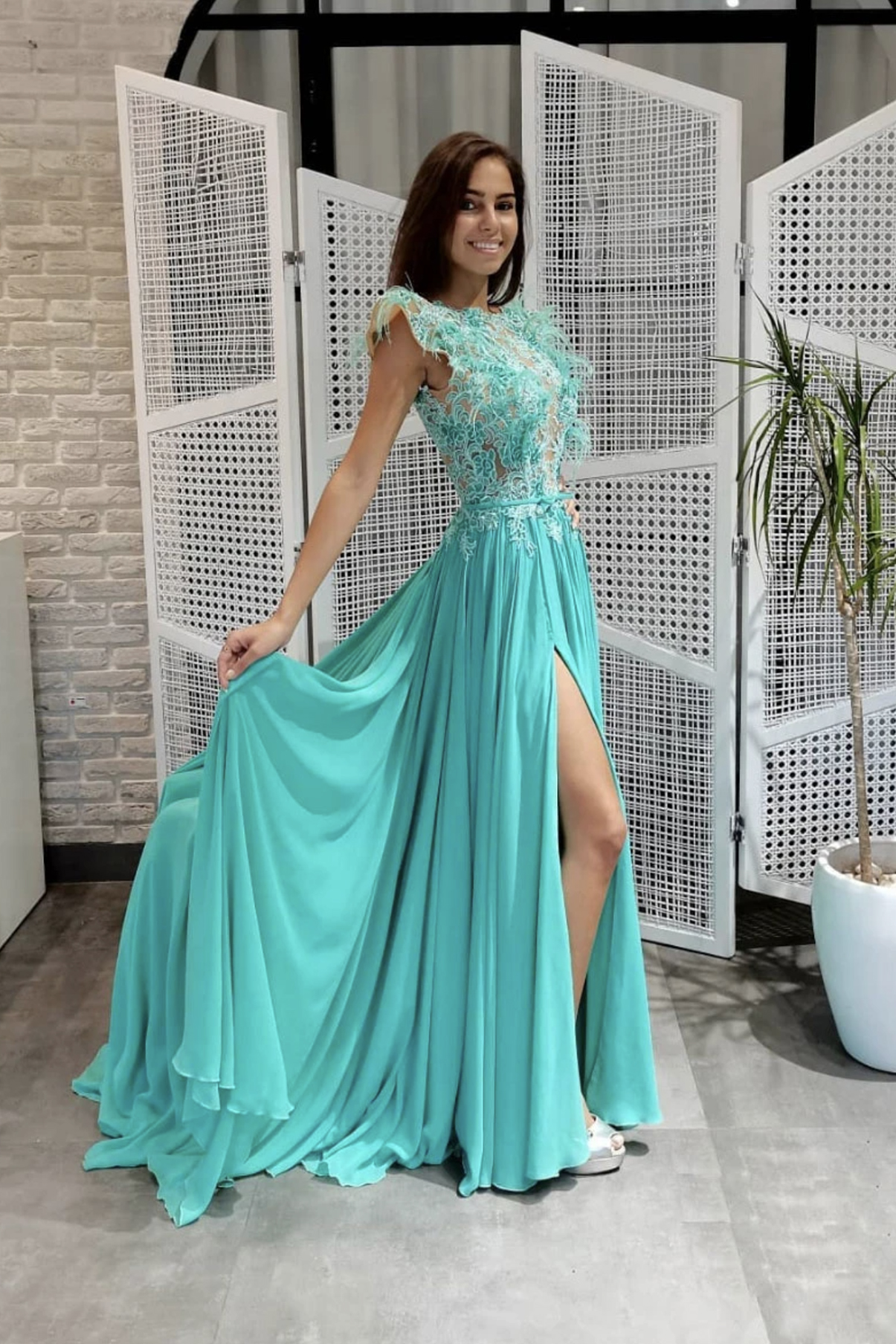 Green chiffon lace long A line prom dress evening dress · Dress idea · Online Store Powered by Storenvy