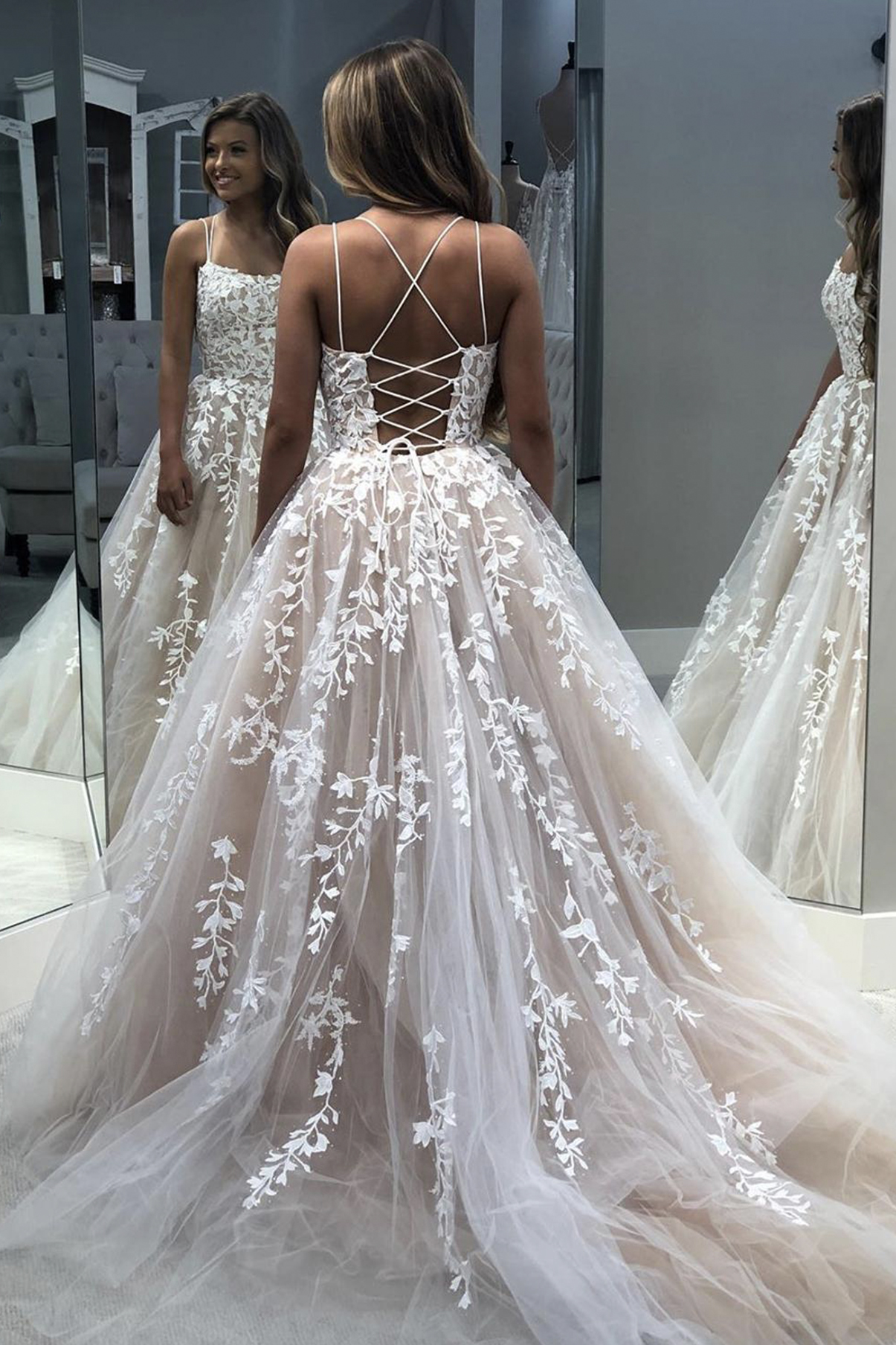 Cute lace long A line prom dress evening dress