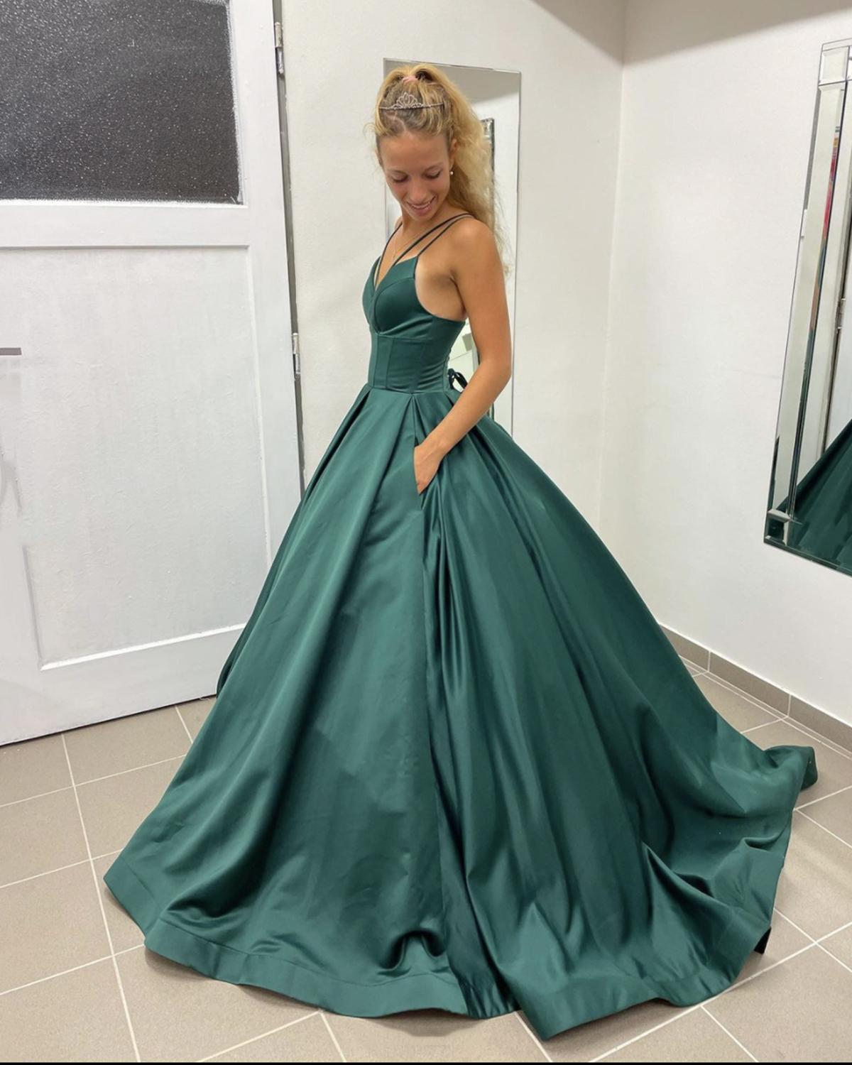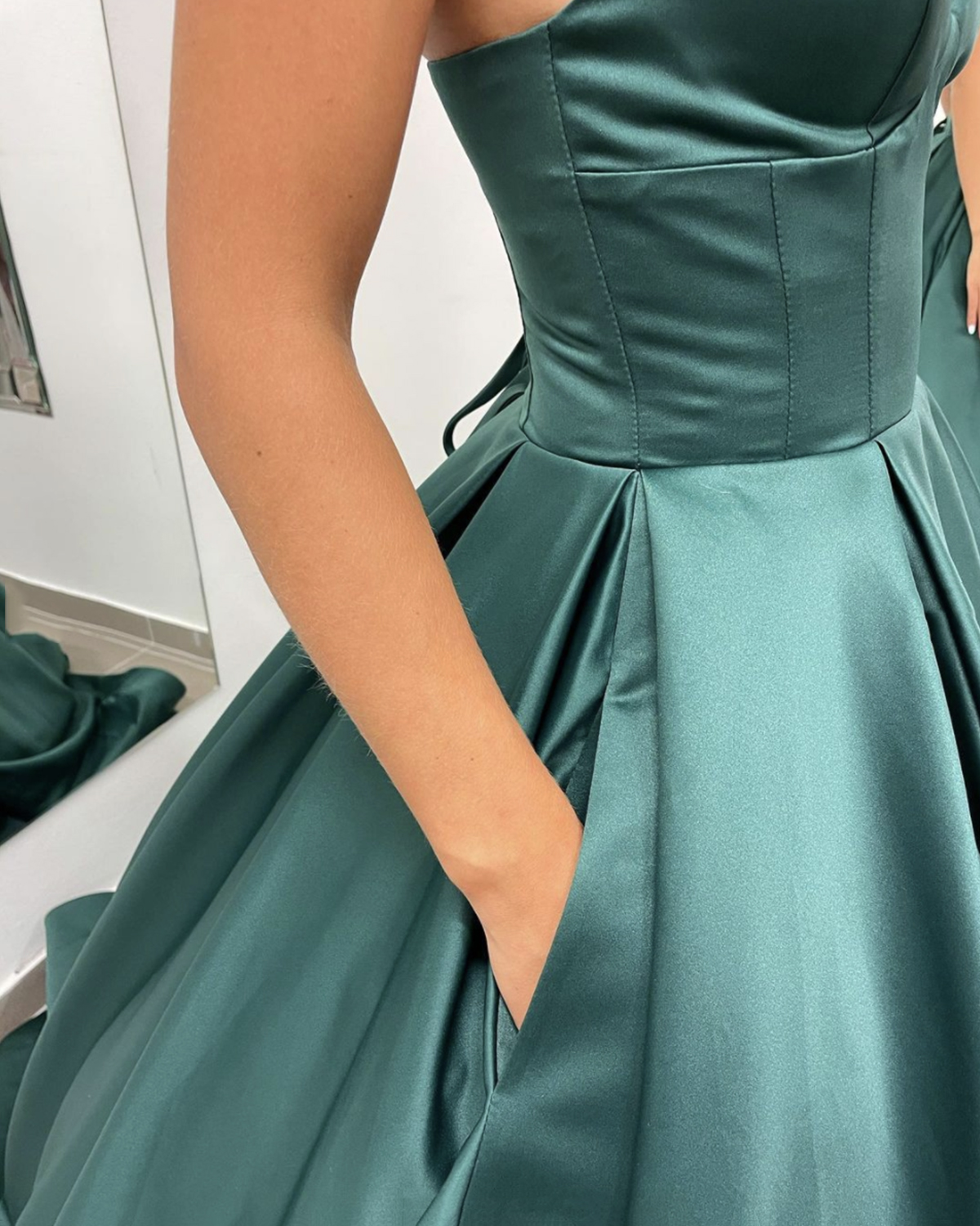 - Green satin long A line prom dress green evening dress -