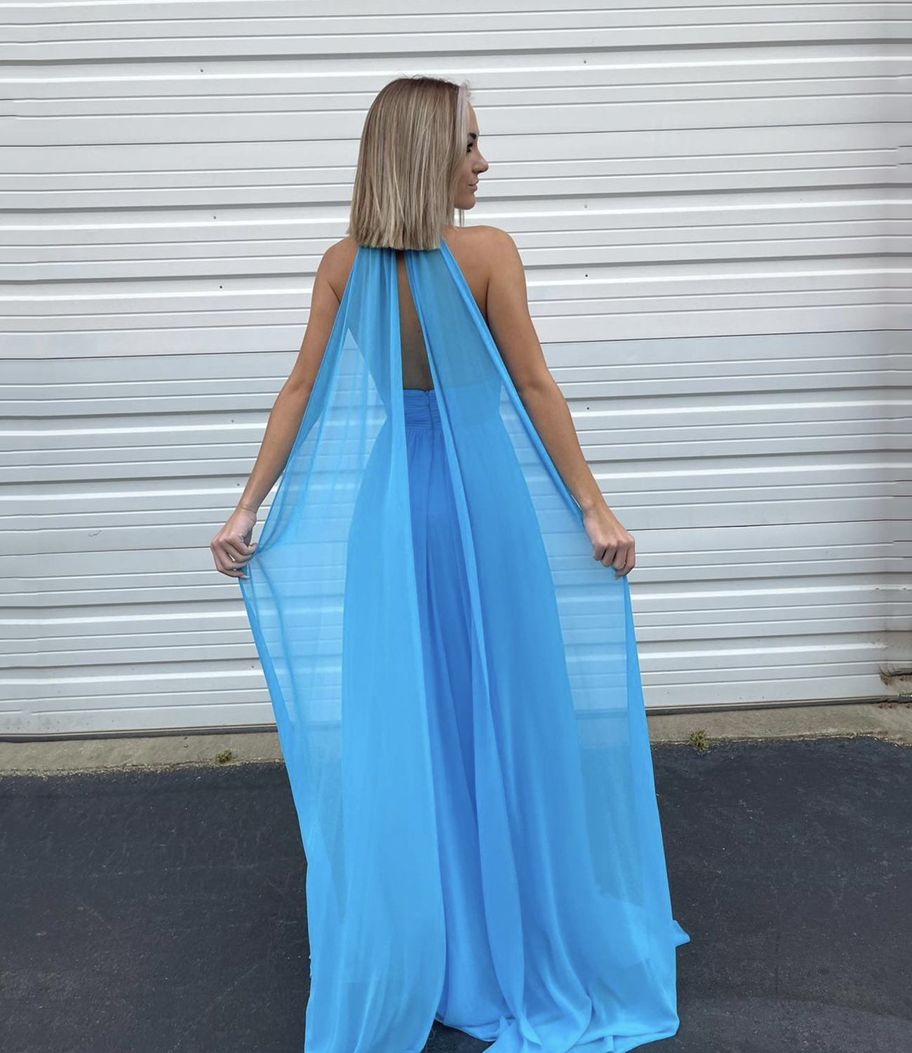 - Blue chiffon long A line prom dress blue evening dress -