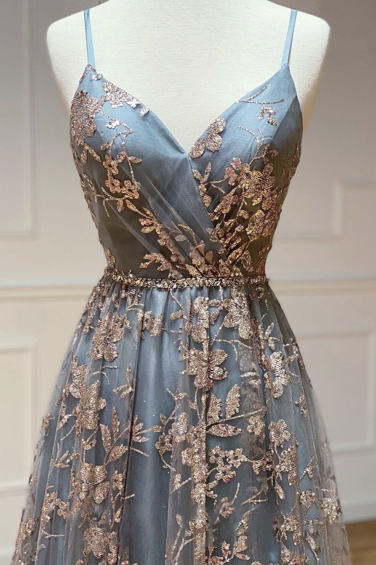 Gray tulle sequins long prom dress A line evening dress · Dress idea · Online Store Powered by Storenvy