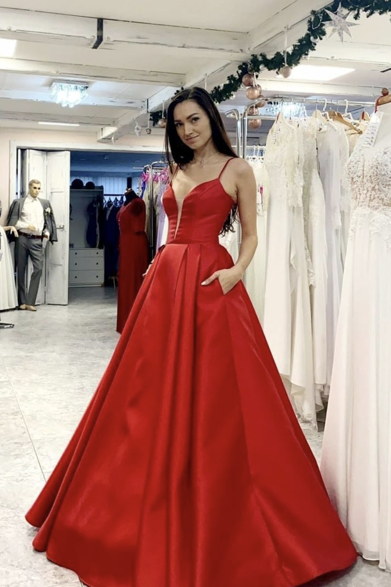 - Red saitn long prom dress red evening dress -