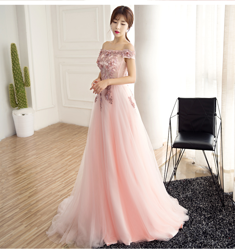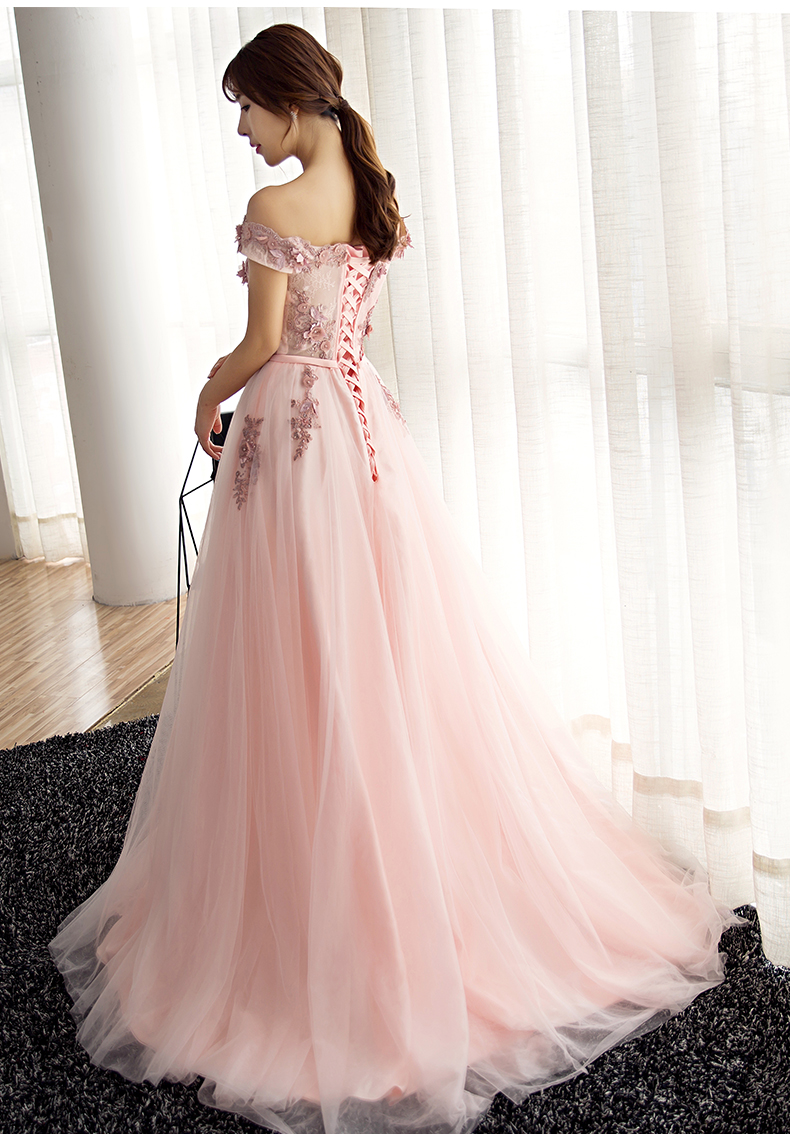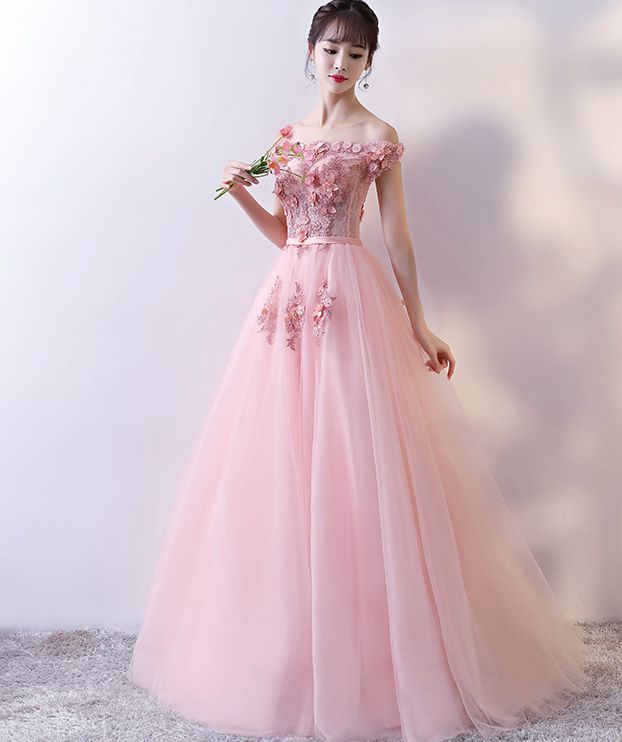 - Pink lace tulle long prom dress, pink evening dress -