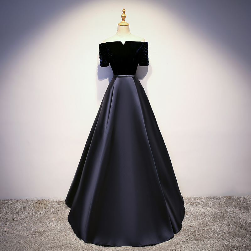 - Elegant velvet satin long prom dress, evening dress -