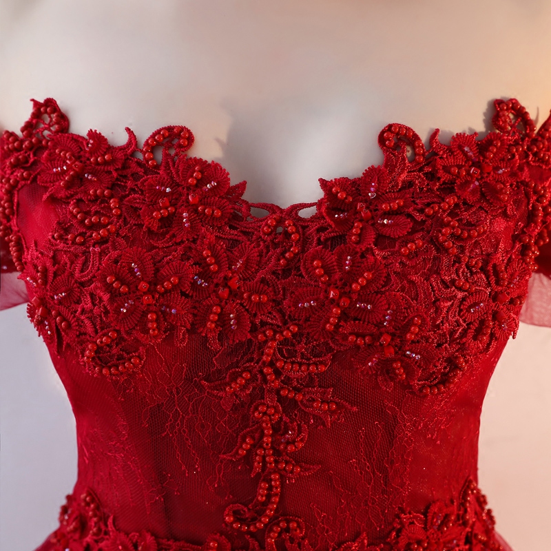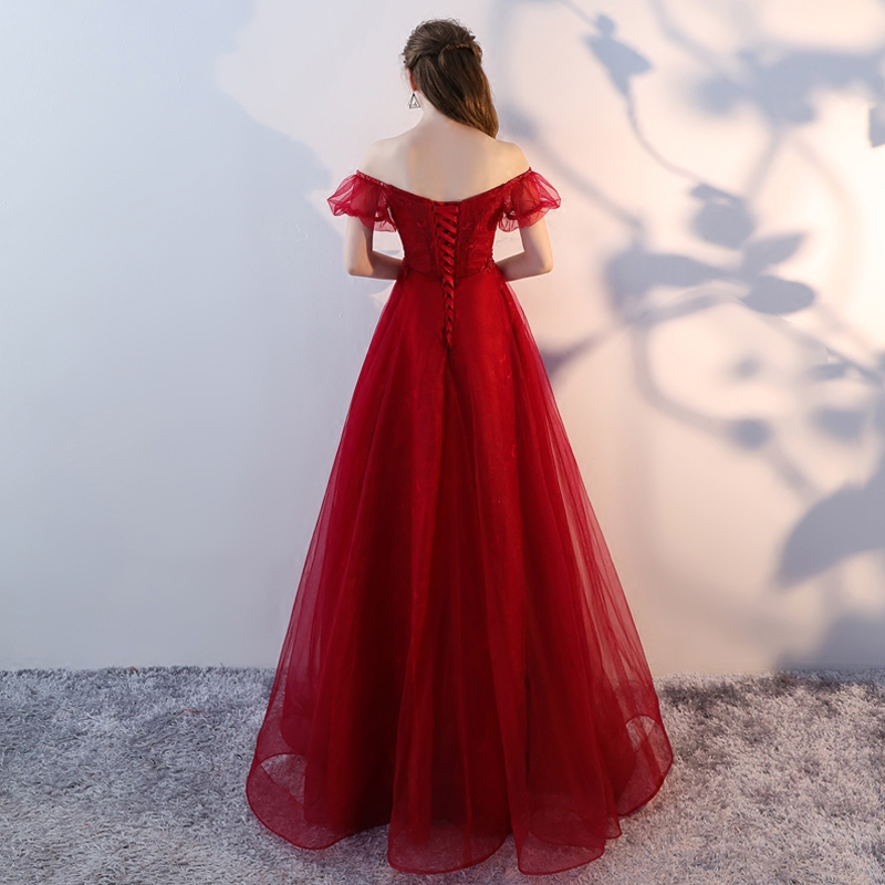 - Burgundy tulle lace long prom dress, burgundy evening dress -
