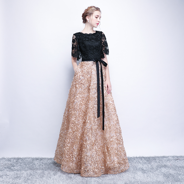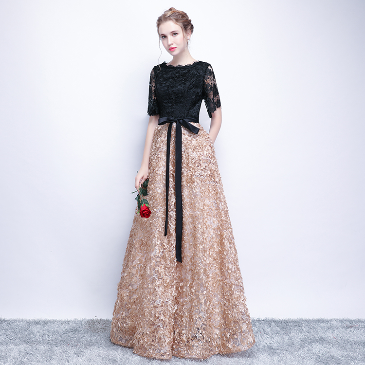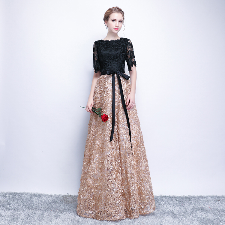 - Black lace long prom dress, evening dress -
