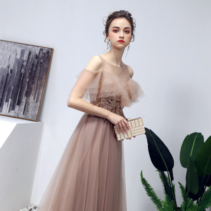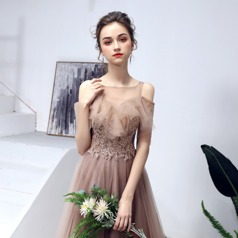 - Stylish tulle lace long prom dress, evening dress -
