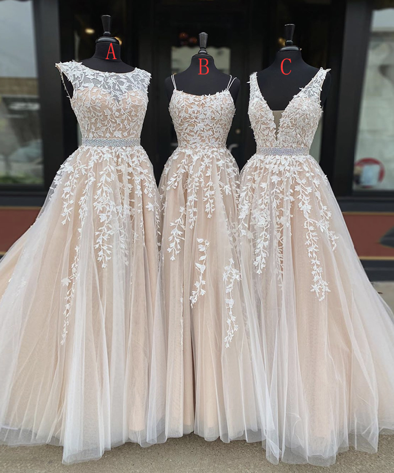 - A line tulle lace long prom gown formal dress -