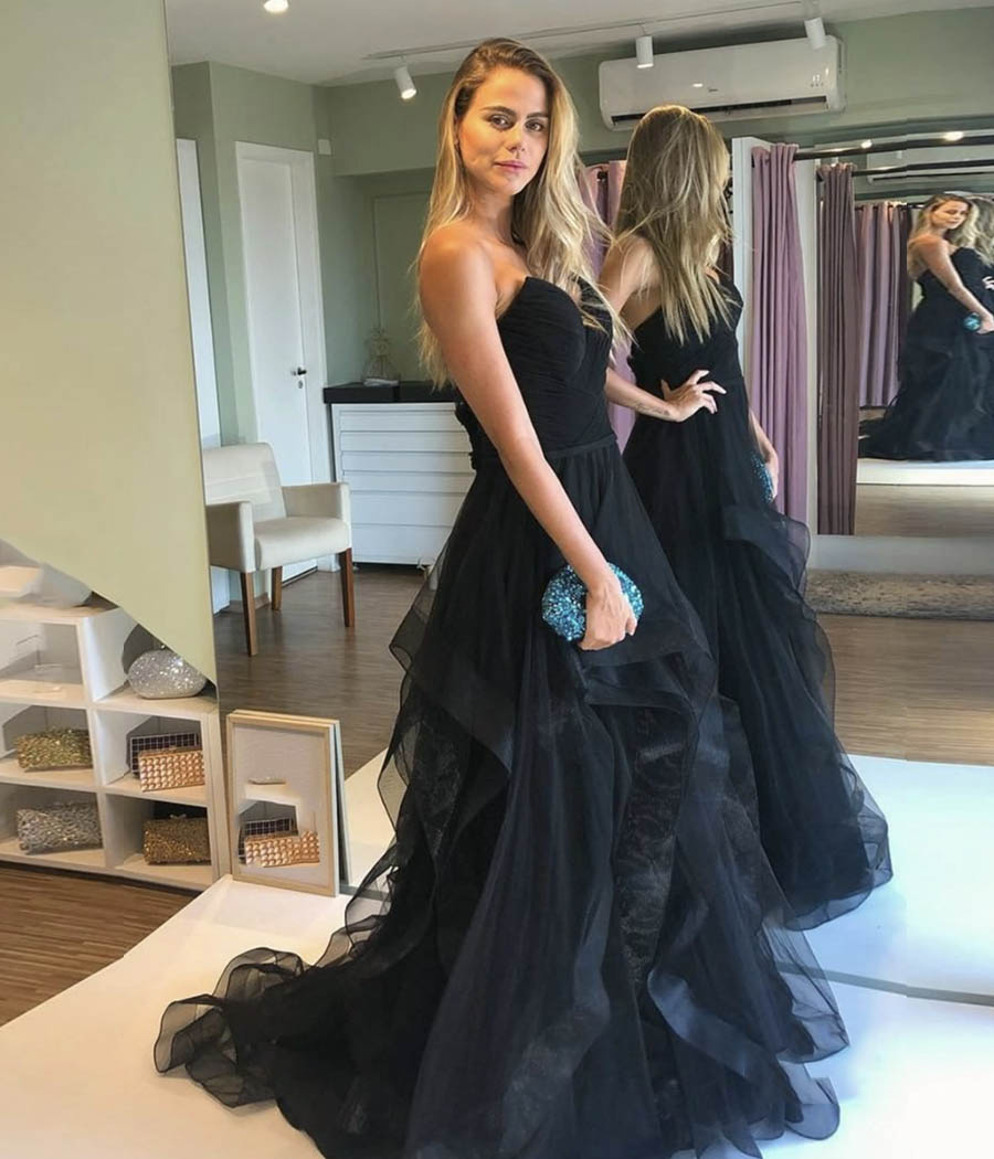 - Black tulle long prom dress black evening dress -