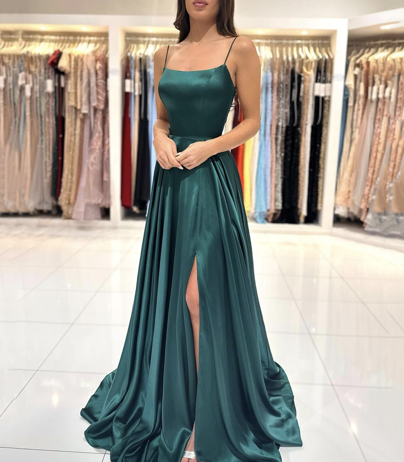 - Simple Satin Long A-Line Prom Dress, Green Evening Dress -